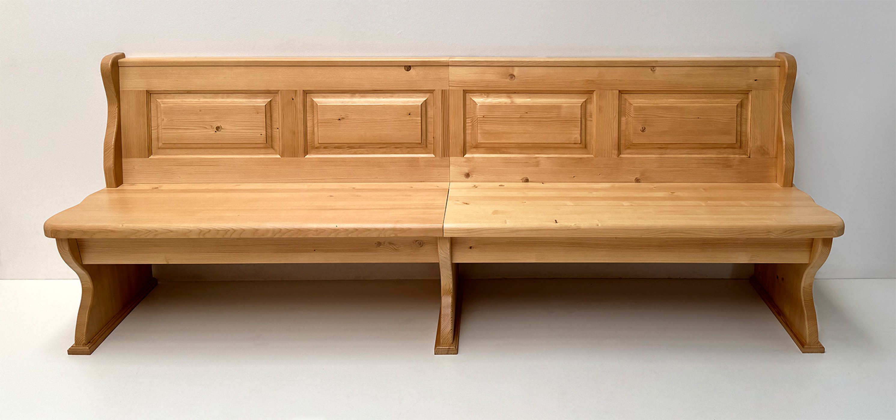 Einzelbank Lindau mit 2 Truhen, Höhe Wangen 88,5 cm, Ablage 87 cm, Länge 250 cm, starker Sitz und starke Wangen 4 cm , Aussenwangen gerillt