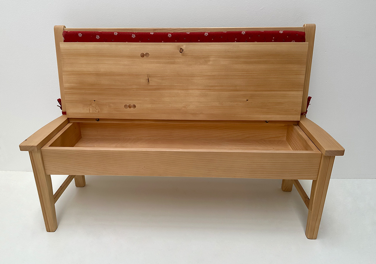 Einzelbank Nürnberg Fichte mit Truhe 133 cm, Polster genäht TS-2386