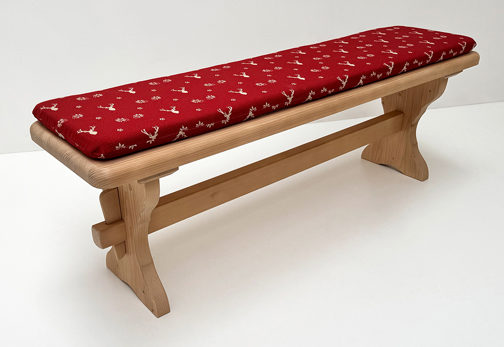Vorbank Lindau, 140 cm, Polster genäht, Stoff Landleben TS-3001 Hirsch rot