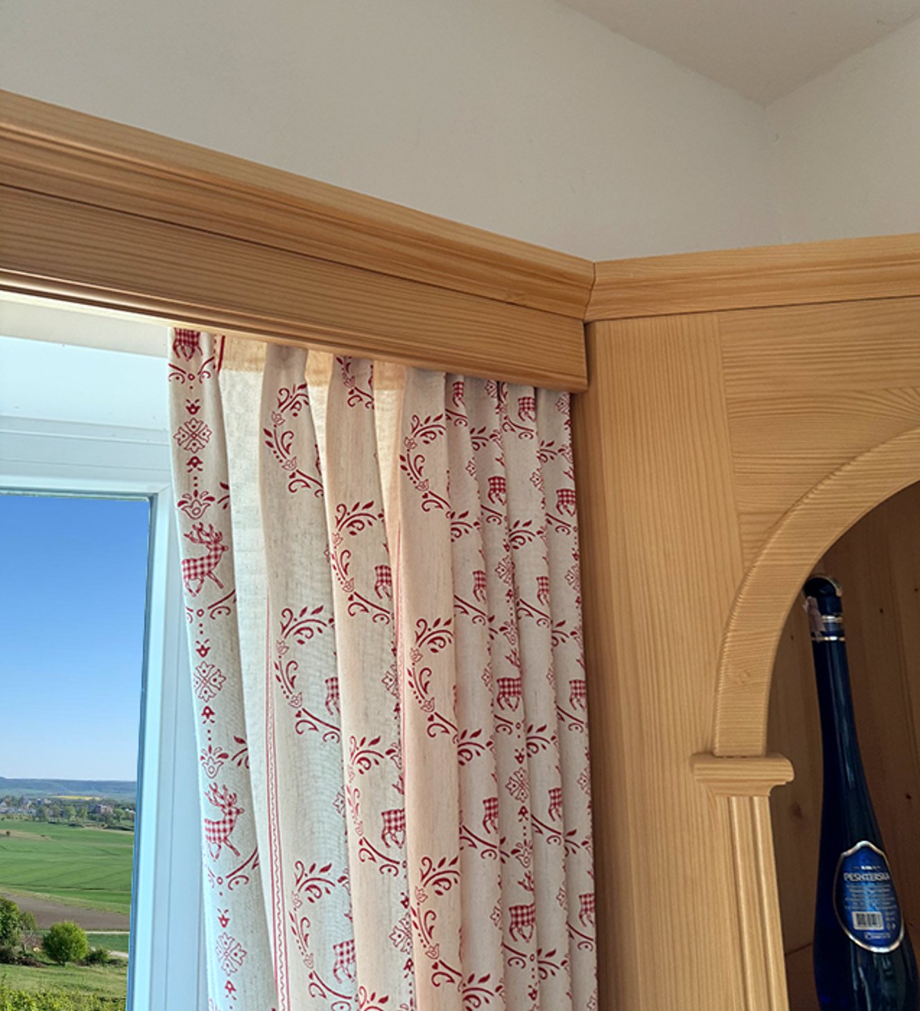 Vorhangschiene mit Verkleidung, Träger nach Maß, Anfertigung gem. Skizze, Innenlänge 170 cm
