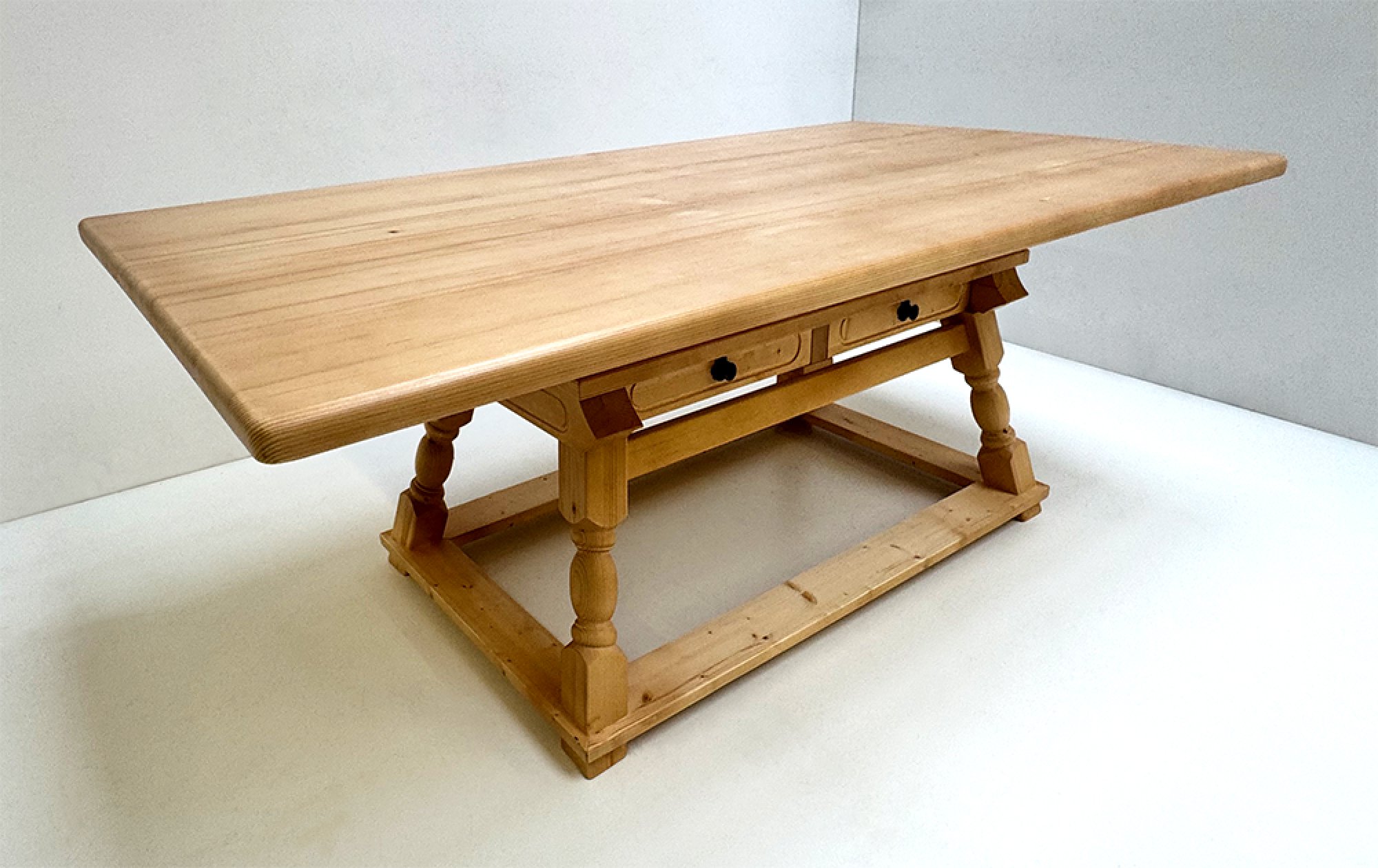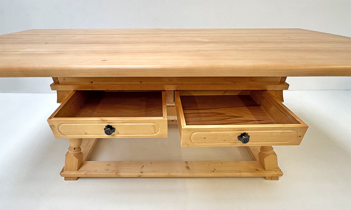 Landhausmöbel Jogltisch Lindau mit 2 Schubladen, Abmessung:110/220 cm mit Fichteplatte 4 cm stark