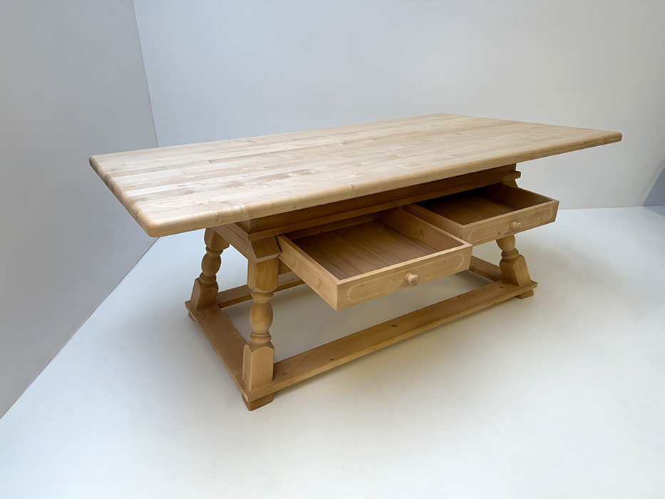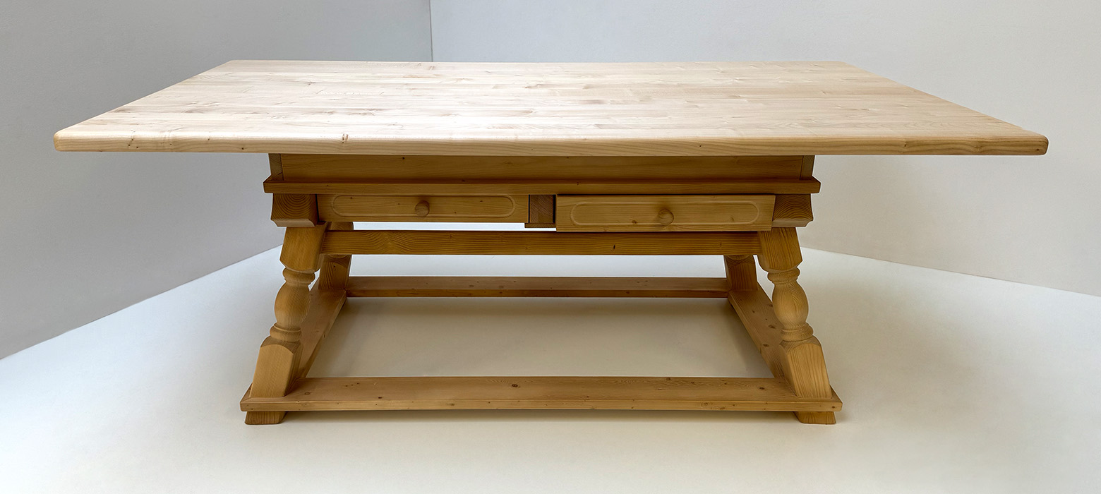 Landhausmöbel Jogltisch Sondermaß 120/200 cm Fichteplatte, Rosner gewachst