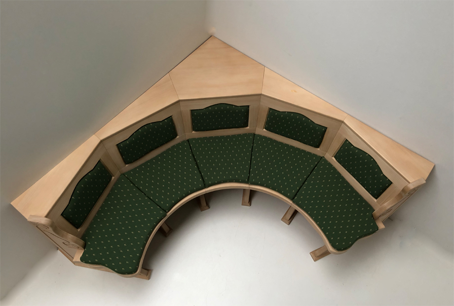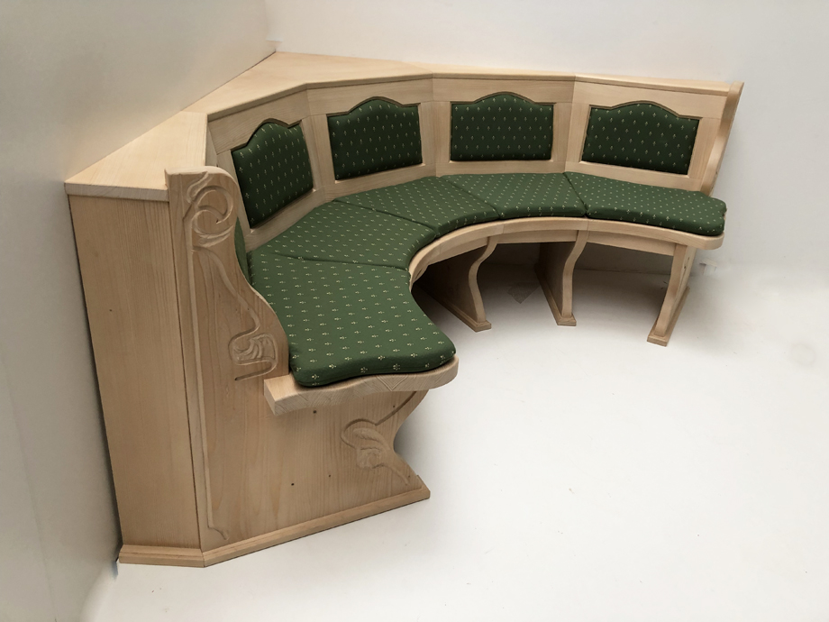 Rundbank Lindau Fichte, Typ B, Schenkelmaß 184/184 cm, Rosner gewachst, für Rundtisch Durchmesser 110 cm