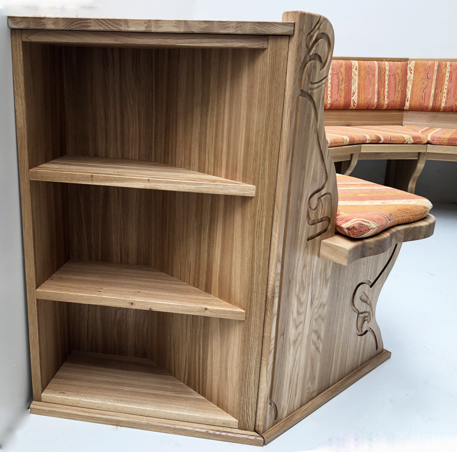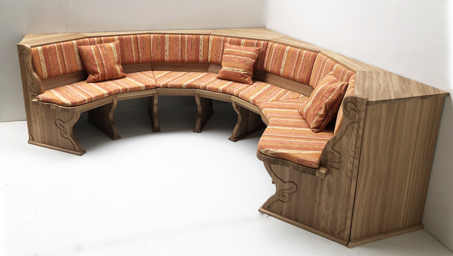 Rundbank Typ D, Schenkelmaß: 2430 x 24300 mm Massivsitz ! In Eiche massiv, geölt
