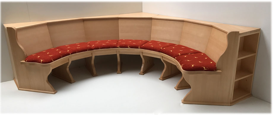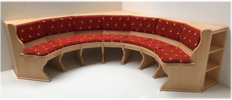 Rundbank Typ D, für Rundtisch Durchmesser 13000mm, Schenkelmaß: 2430 x 24300 mm Massivsitz ! In Fichte Rosner lackiert