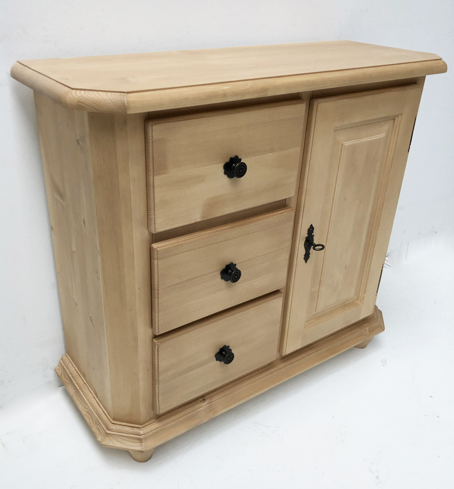 Anrichte Kommode Füssen 1-trg., 3 Schubladen, abgeschrägte Ecken