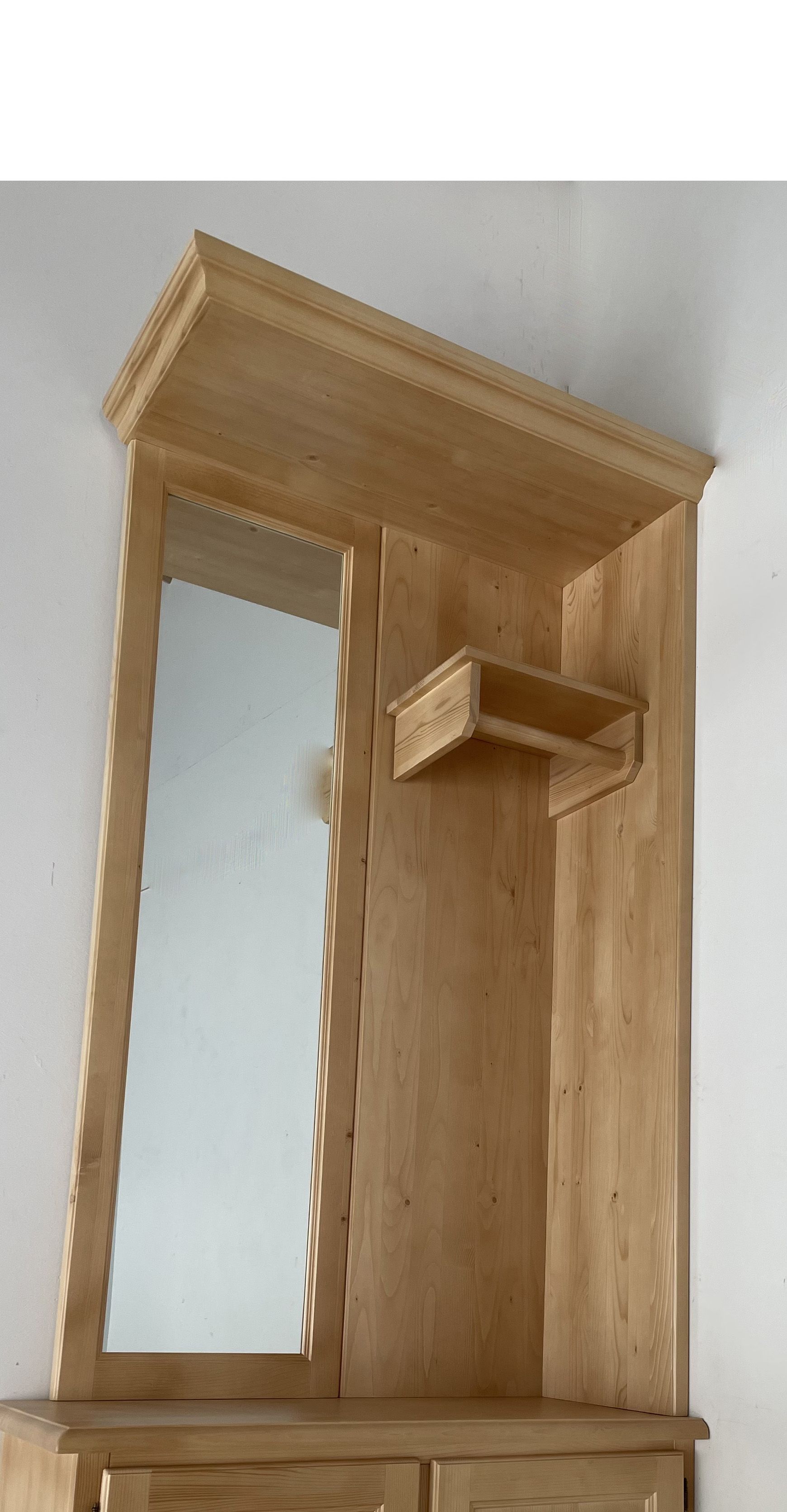 Spiegel gerahmt, Hutablage mit Garderobenstange Holz, Haken nach Bedarf