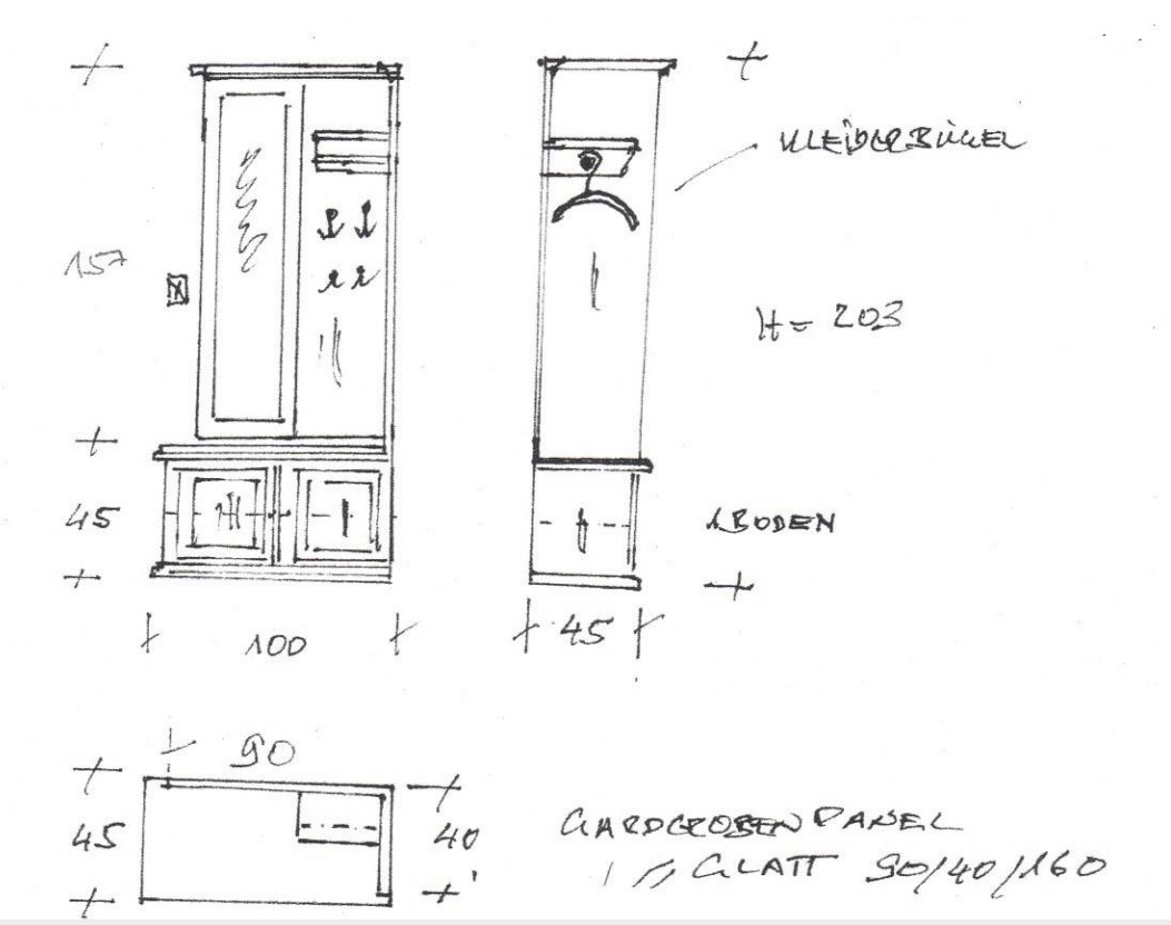 1 Garderobe gem. Skizze und Aufmaß, mit 2 Türen, 1 Boden, Wandverkleidung glatt