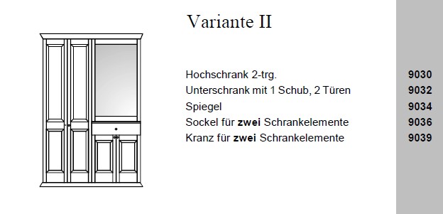 ges. Abm. 129/44/204 cm (B/T/H) bestehend aus: