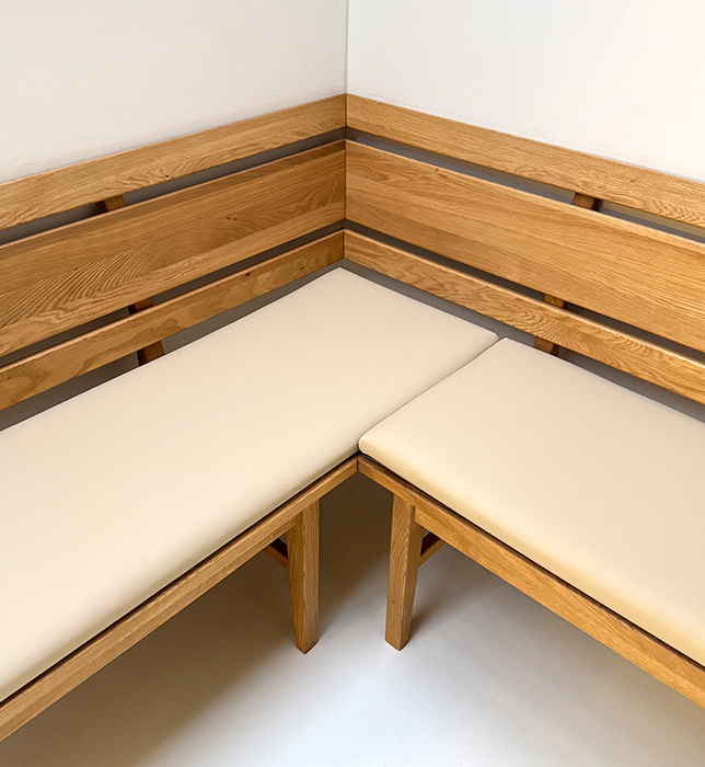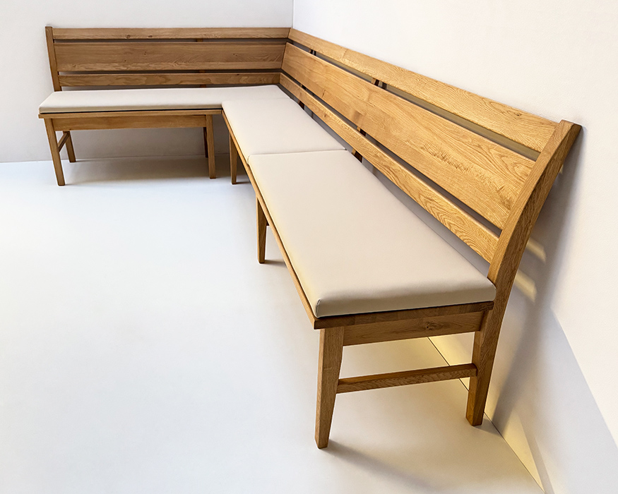 Eckbank ISEO150/210 cm, Wildeiche geölt, Polsterplatte, Stoff Verano 623