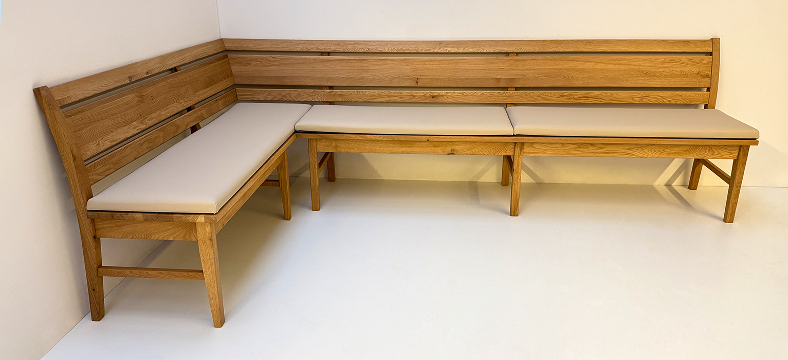 Eckbank Iseo Sondermaß 160/280 cm, Wildeiche geölt, Polsterplatte Höpke Malaga 502