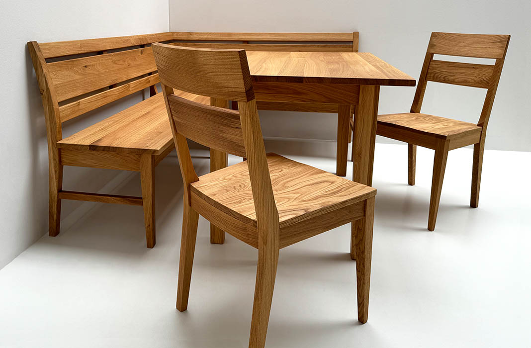 Eckbankgruppe Iseo Wildeiche geölt, Bank 190/150 cm, Tisch 85/125 cm, 2 Stühle Filippa-M