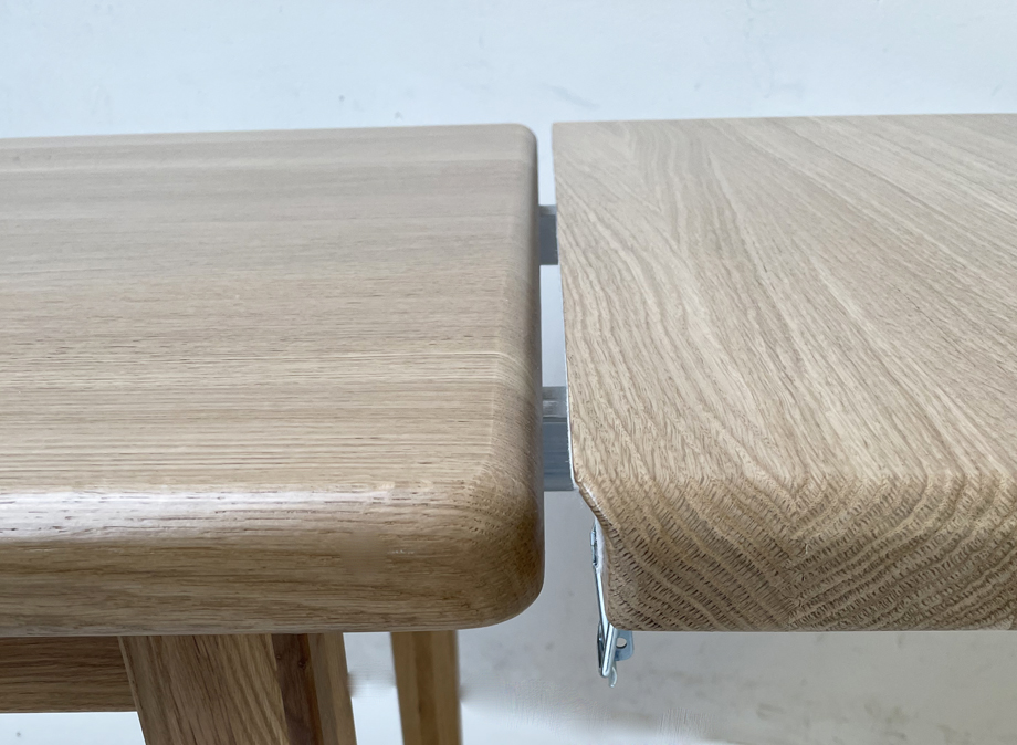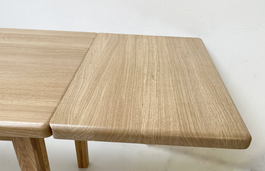 Vierfußtisch ISEO, Wildeiche 145/85 cm, Platte 4 cm stark, Ansteckplatte 50 cm, mit Konterprofil