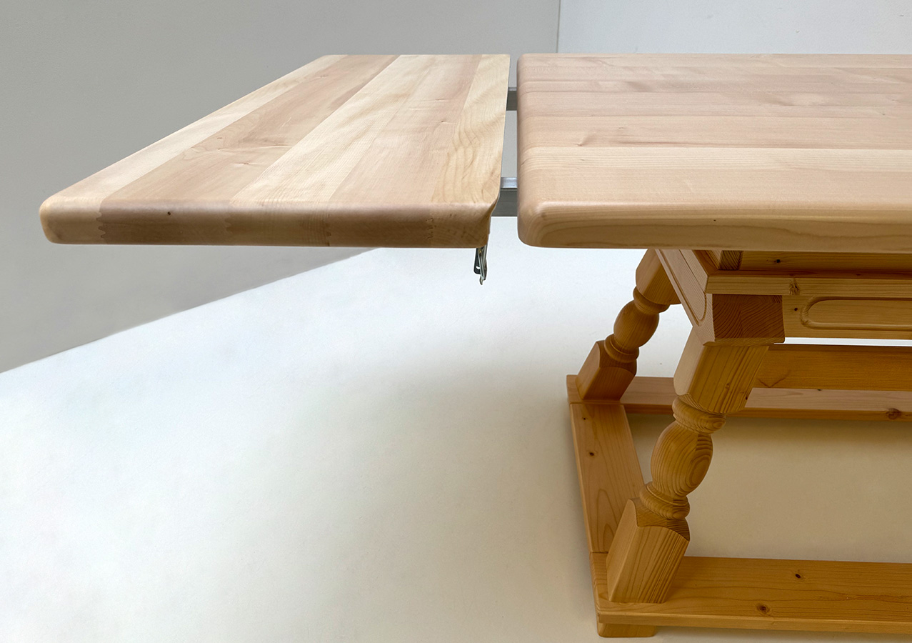 Landhausmöbel Jogltisch Lindau 100/140 cm Ahorn, inkl. Ansteckplatte 40 cm, Alu- Anstecksystem