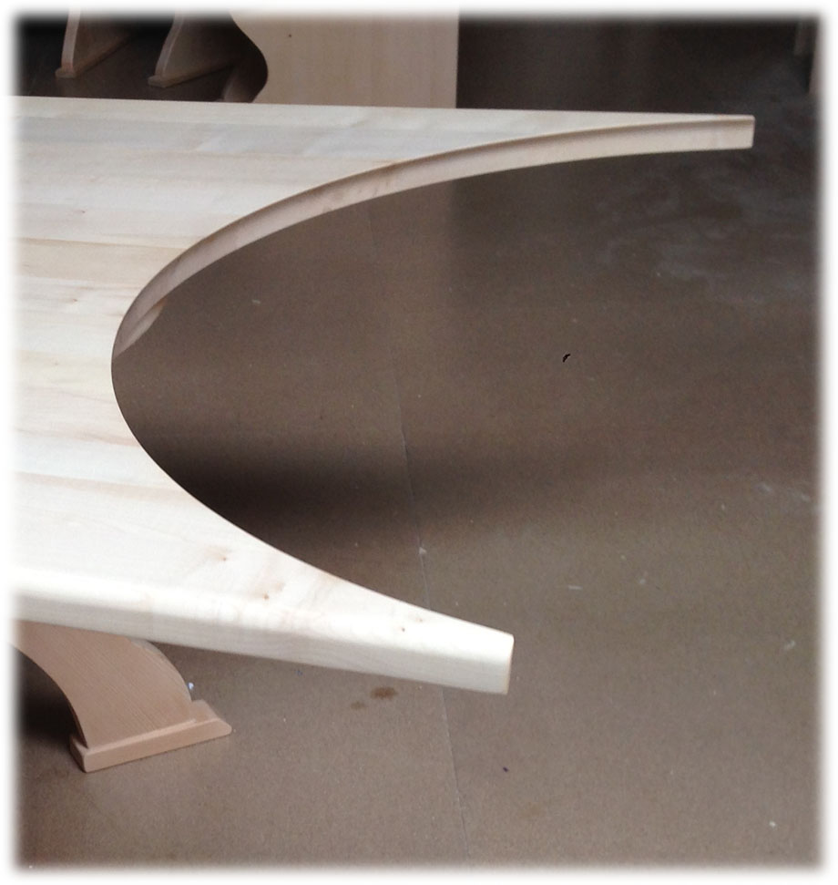 Anstelltisch 100 cm mit Segmentplatte Verlängerung Tisch um 100 cm mit Konterprofil, Platte 4 cm massiver Ahorn