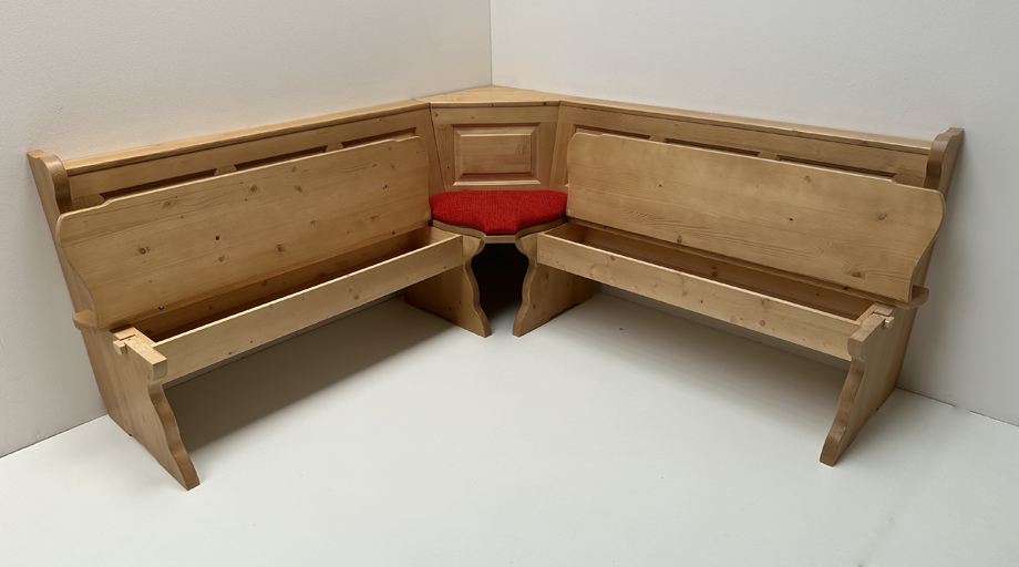 Eckbank solo Mod. Landau, 195/195 cm, mit Truhen nach oben aufklappbar! Massivsitz. 4 cm stark,