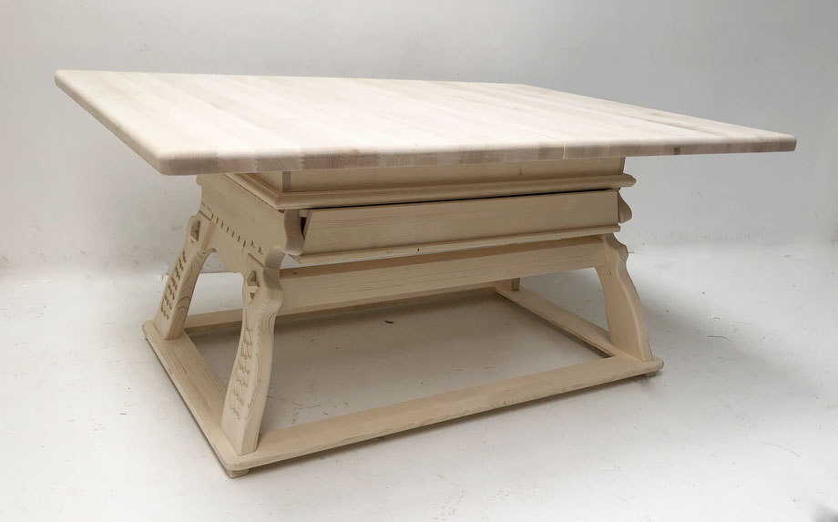 Platte Ahorn 4 cm stark, Profil R20 , Gestell mit Schubfach
