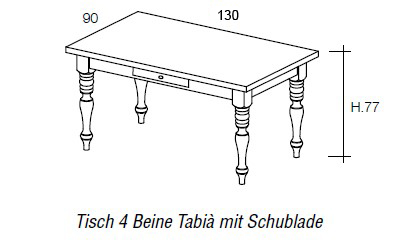 4-Fuß-Tisch mit Schublade, 130 x 90 cm, Fichte massiv