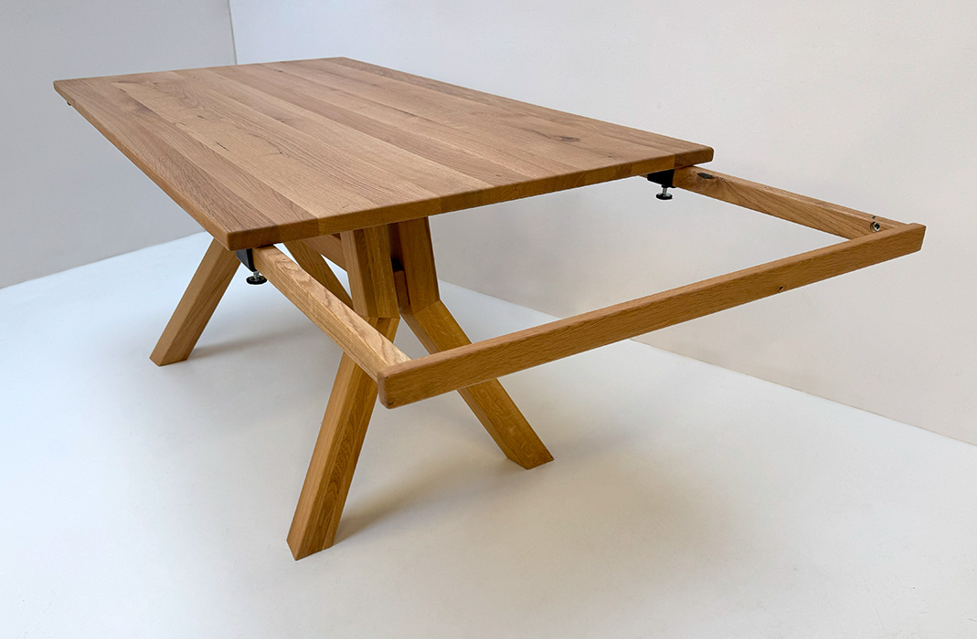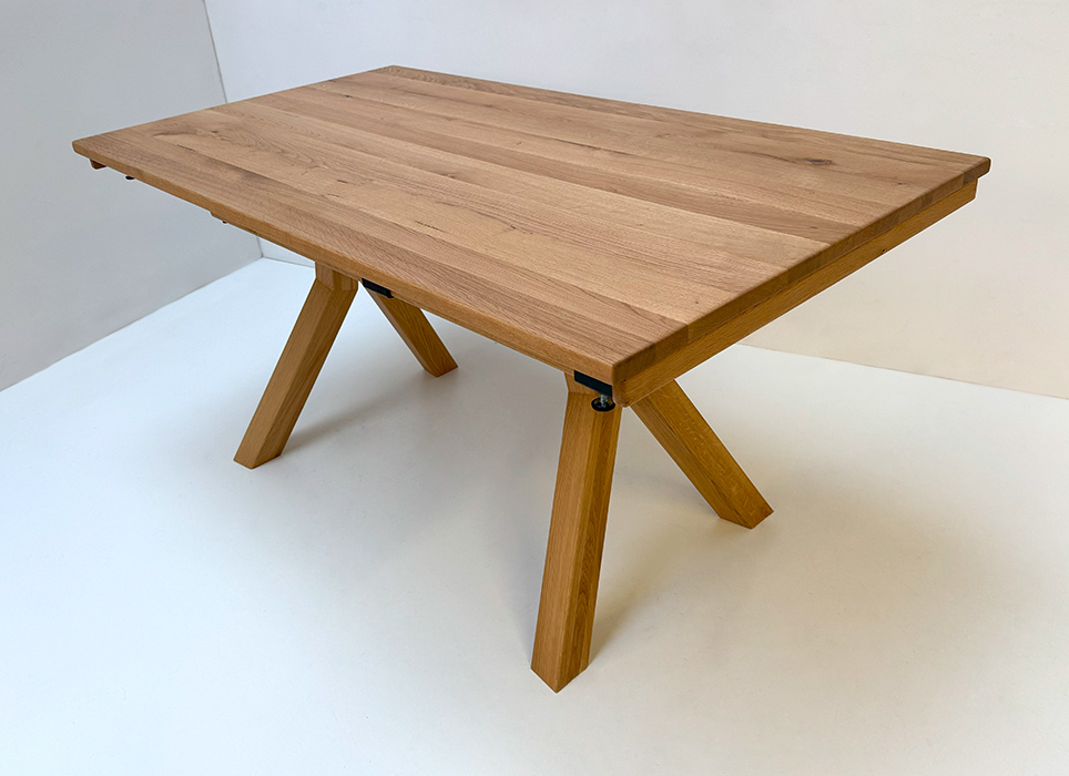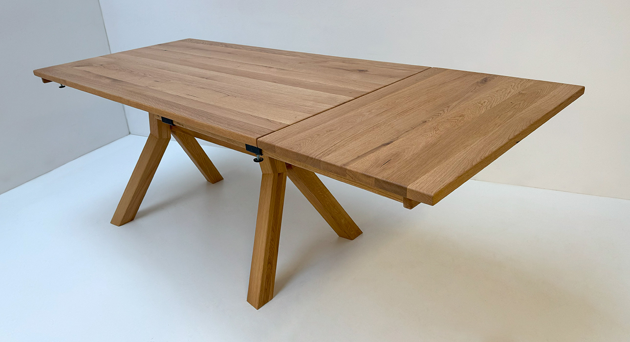 Larissa Tisch 155/85 cm mit 2 Einlegeplatten 50 cm, Auszugsystem Holz, Wildeiche geölt