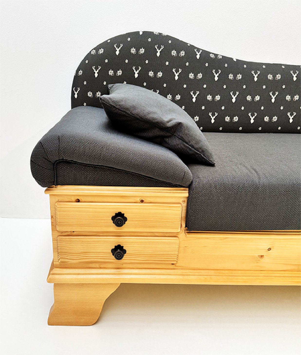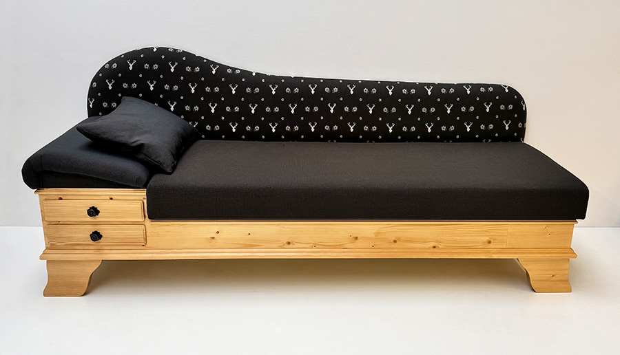 Liege Chiemgau Kopfteil links wenn man davorsteht und auf die Liege sieht