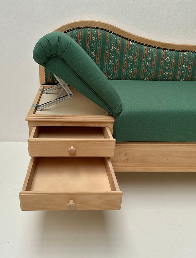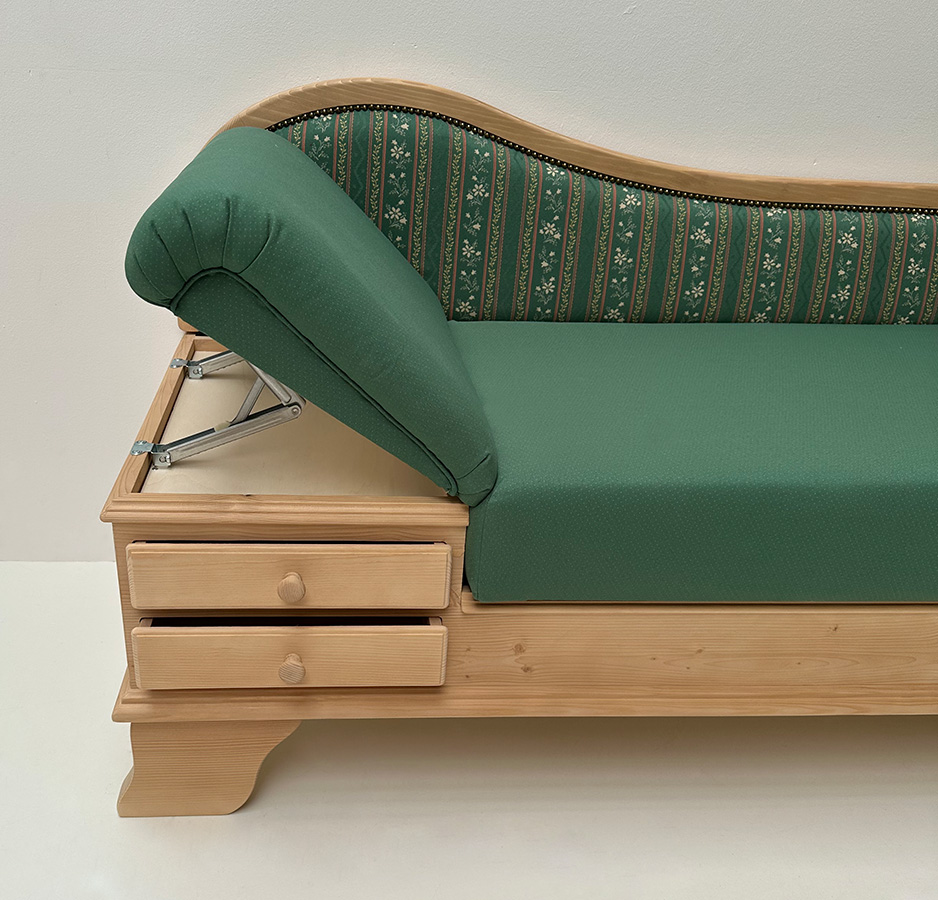 Liege mit Kopfteil links wenn man davorsteht und auf die Liege sieht, Abm: 195/75/86 cm, (L/T/H)