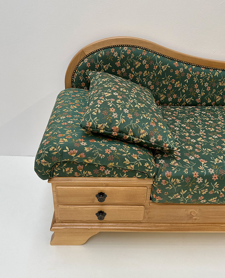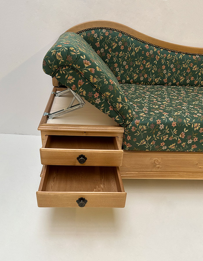 Sofa Liege Garmisch, Sonderlänge 205 cm, Antik hell, Stoff Mülheim grün