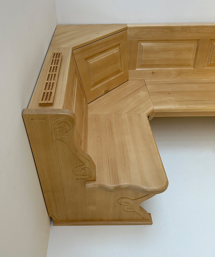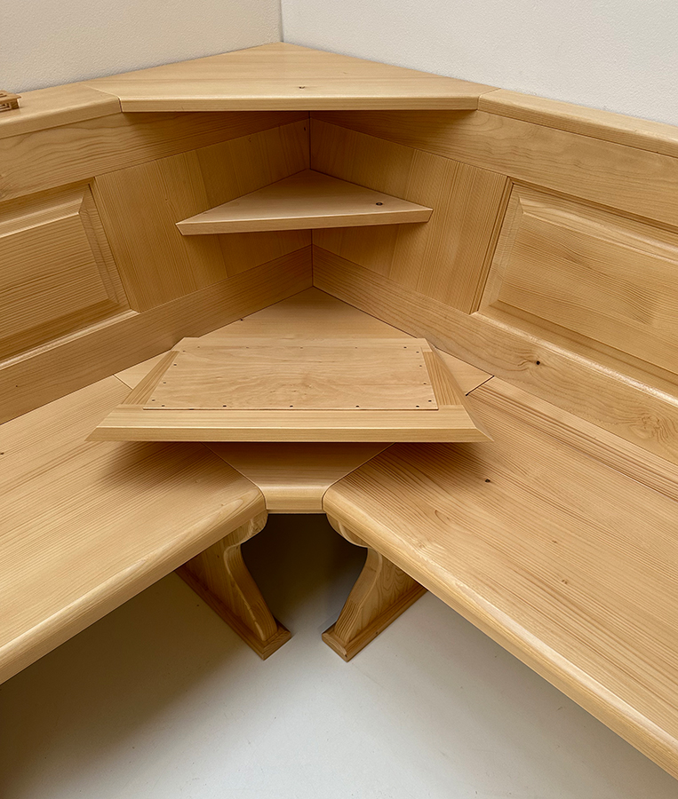 Eckbank Lindau 220/130, Truhen, Ablagen und Wangenverbreiterungen, Eckkapitel
