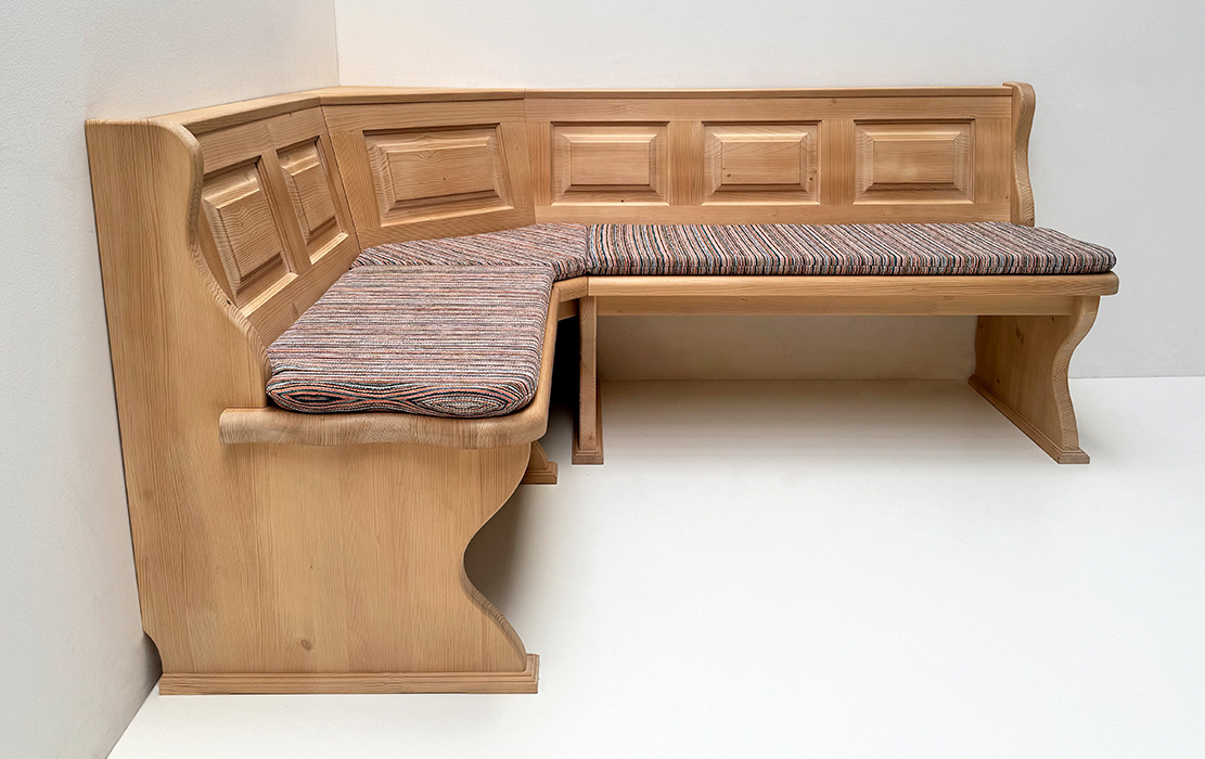 Eckbank Lindau 145/185 ohne Truhen, Höhenkürzung 83 cm, Aussenwangen glatt, gewachst, Salzburg -47