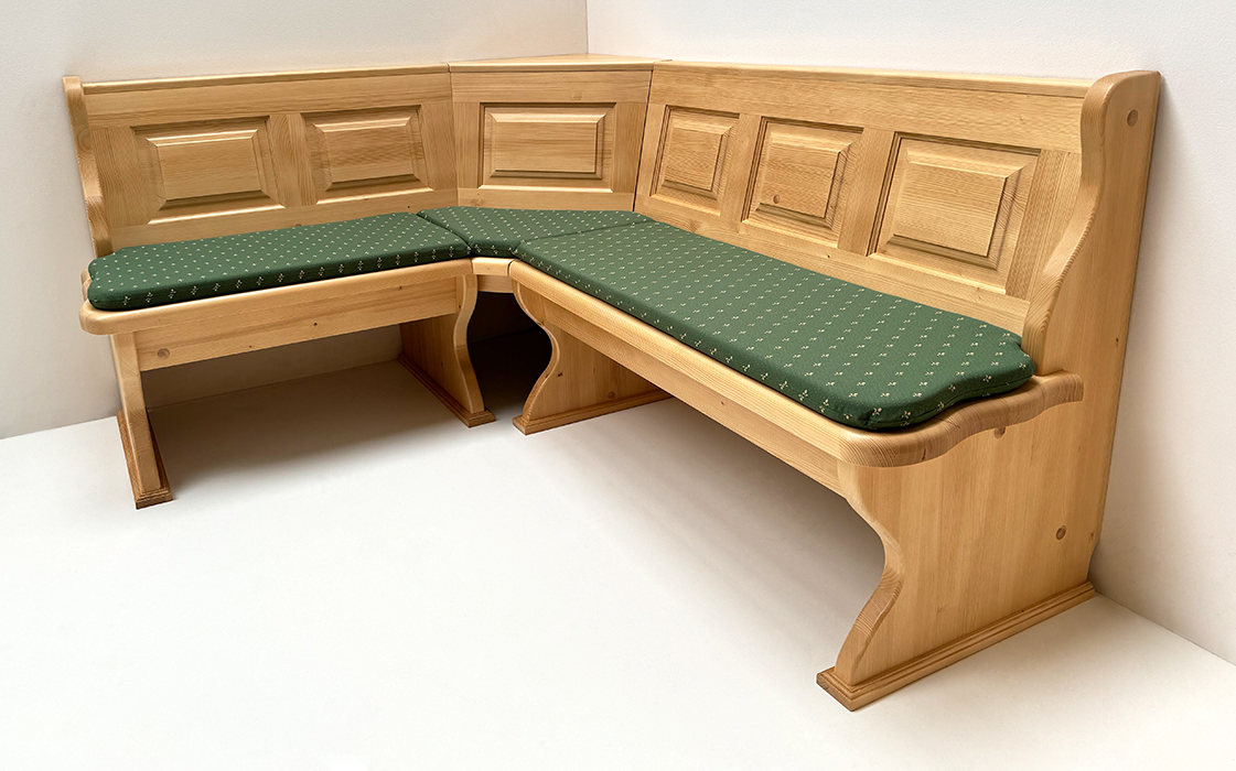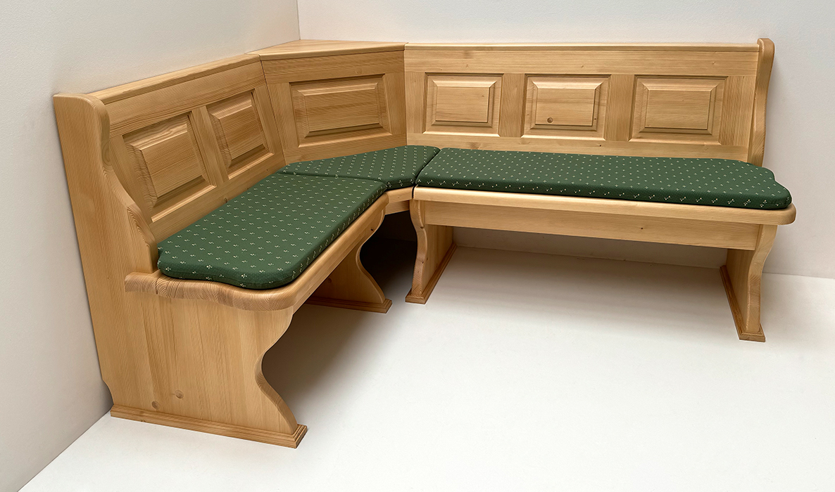 Eckbank Lindau 165/125 mit Truhen, Rosner gewachst, Polster lose genäht, Kundl grün