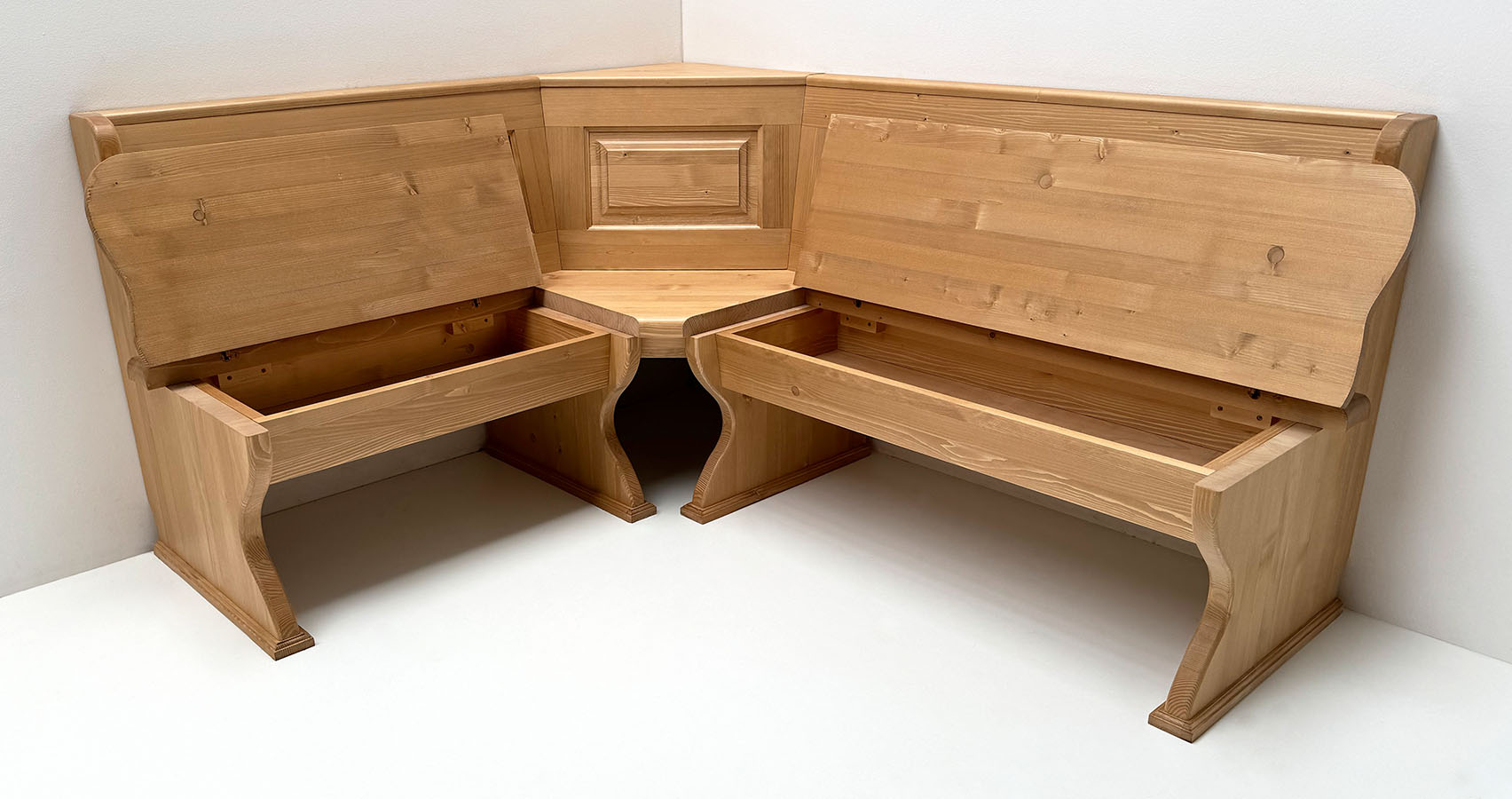 Eckbank Modell Lindau, Stellmaß A>150/185 cm mit Truhen, Außenwangen glatt