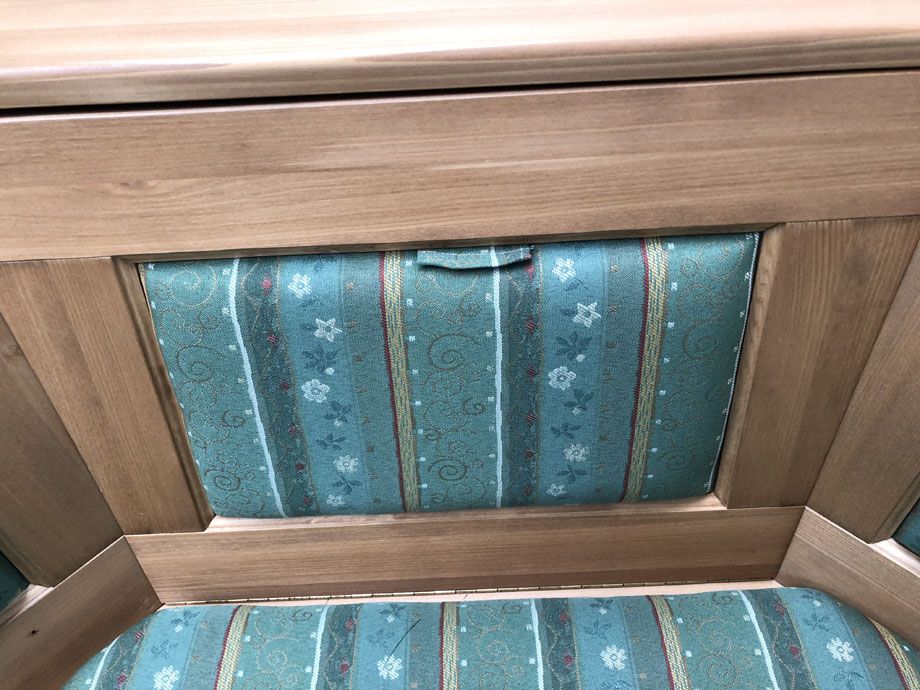 1 Eckbank Lindau ohne Truhen, Schenkelmaß 165/300 cm, Kasettenpolsterung TS-2391 grün, Ecke aufklappbar !