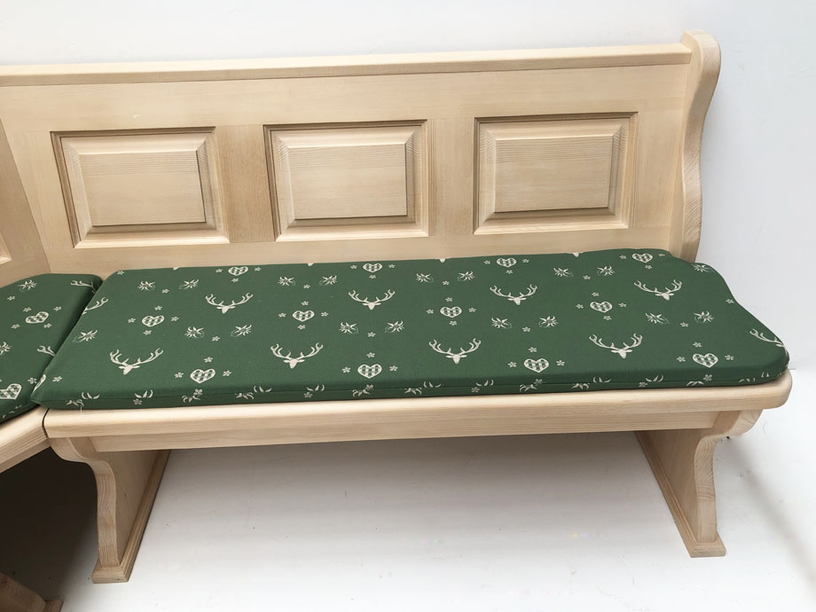 1 Eckbank im Schenkelmaß 180/195 cm, mit Truhen, Aussenwangen geschnitzt