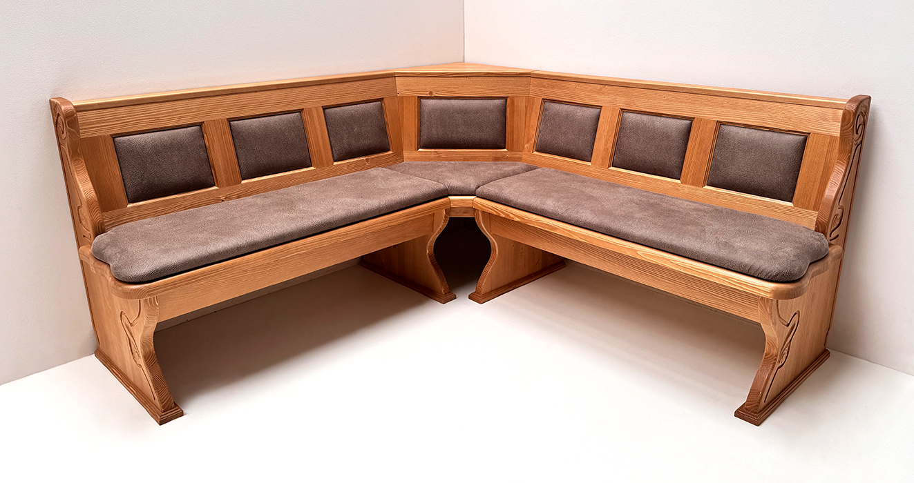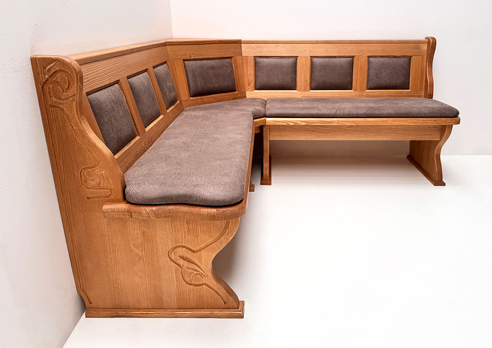 Eckbank Lindau 185/185 cm Truhen, geschnitzt, Antik dunkel (Kleur 2), Kassettenpolster, Stratos 9120