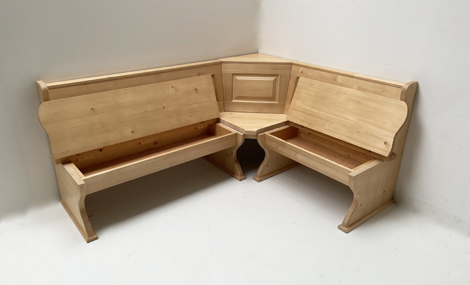 Eckbank Lindau 195/165 mit Truhen, Ecke aufklappbar, Rosner lackiert