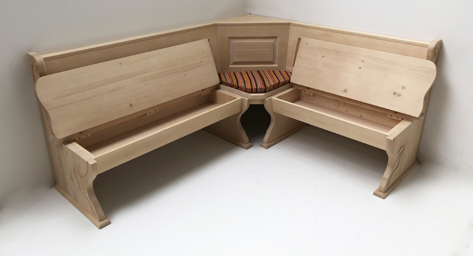 Eckbank Lindau 195/165 mit Truhen, Ecke aufklappbar, Rosner gewachst