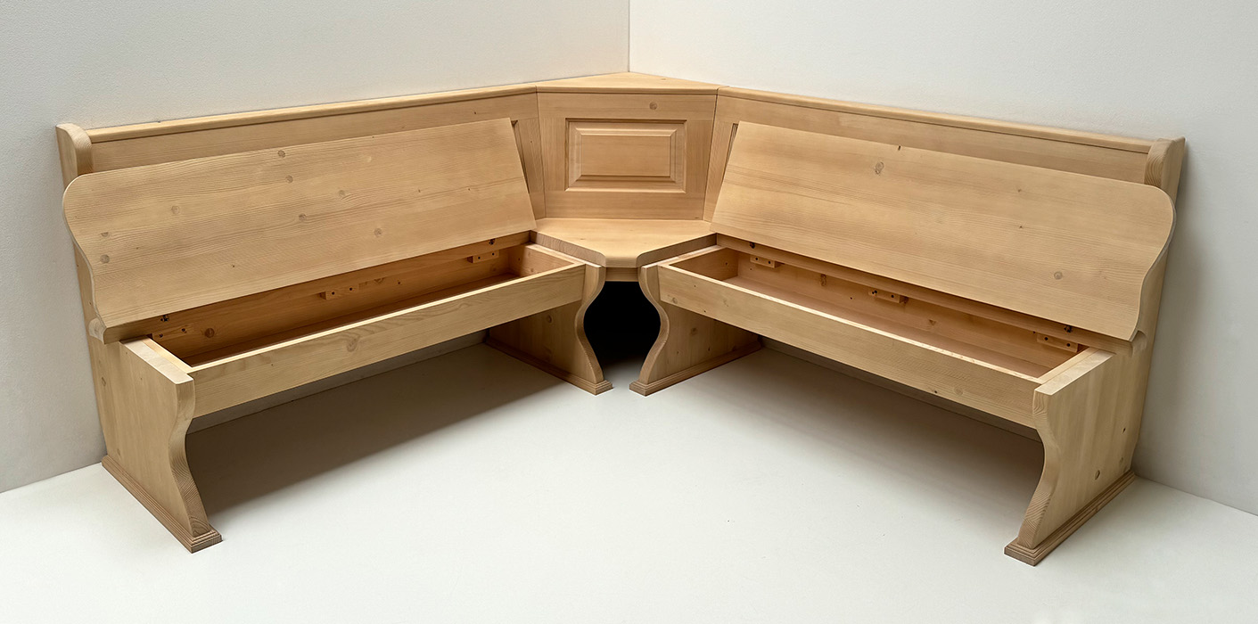 1 Eckbank Lindau im Schenkelmaß 195/195 cm, mit Truhen, Außenwangen glatt