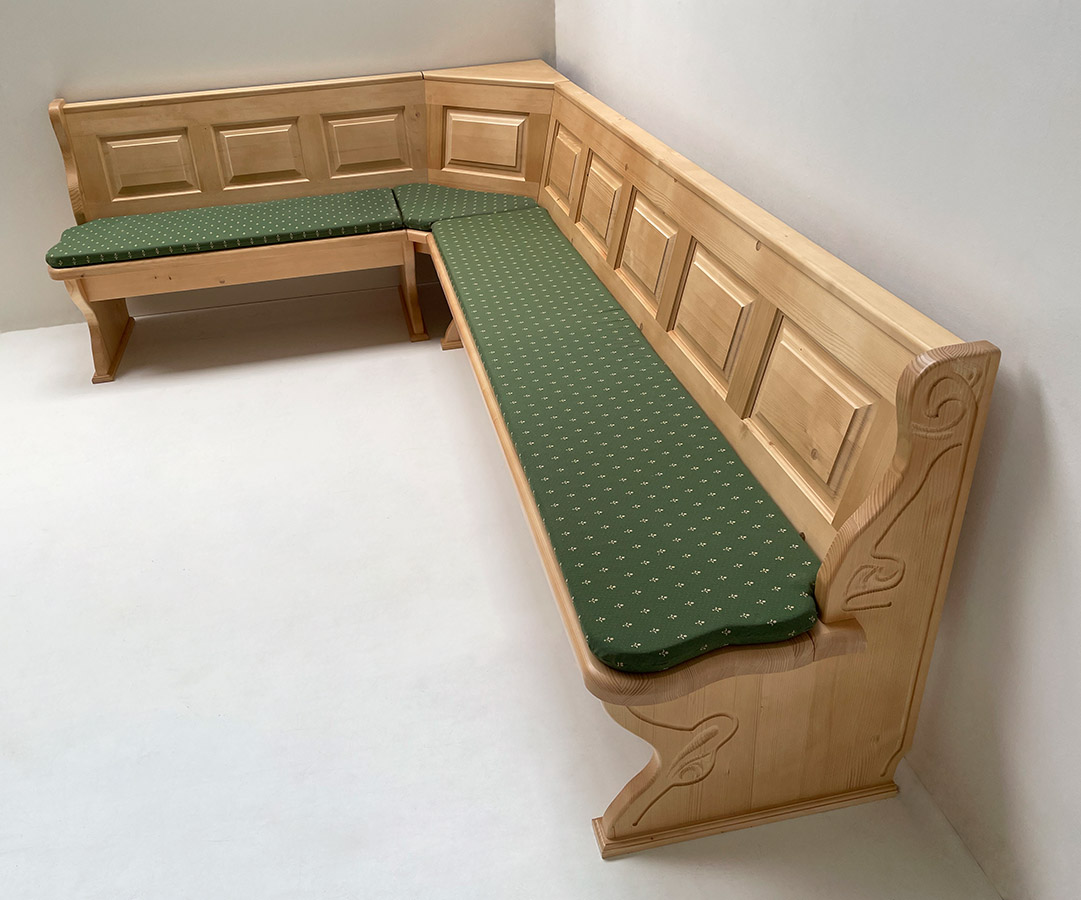 Eckbank Lindau 195/300 , Ablagenverbreiterung, Wangenverbreiterung, Aussenwangen geschnitzt