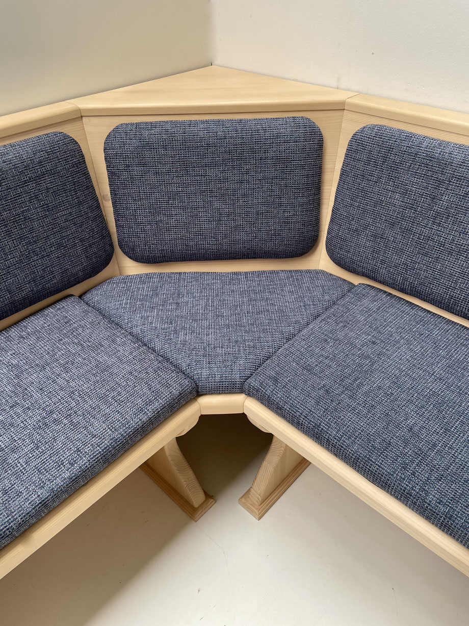 Eckbank Lindau 235/180 cm, Kasetten aufgesetzt, Rosner gewachst, Natura 812 blau