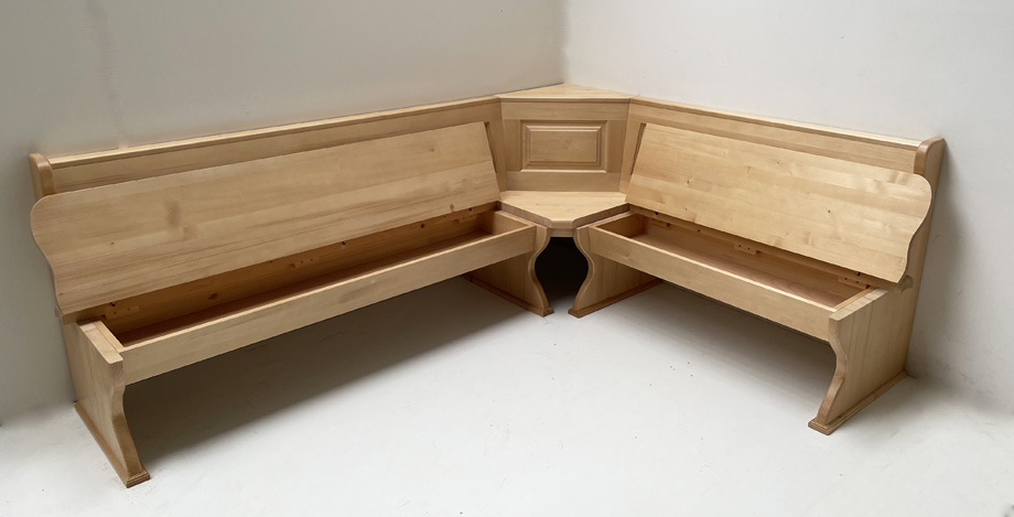 Eckbank Lindau 240/150 cm, Aussenwangen glatt, Truhen aufklappbar, Ablagen Standard 6 cm