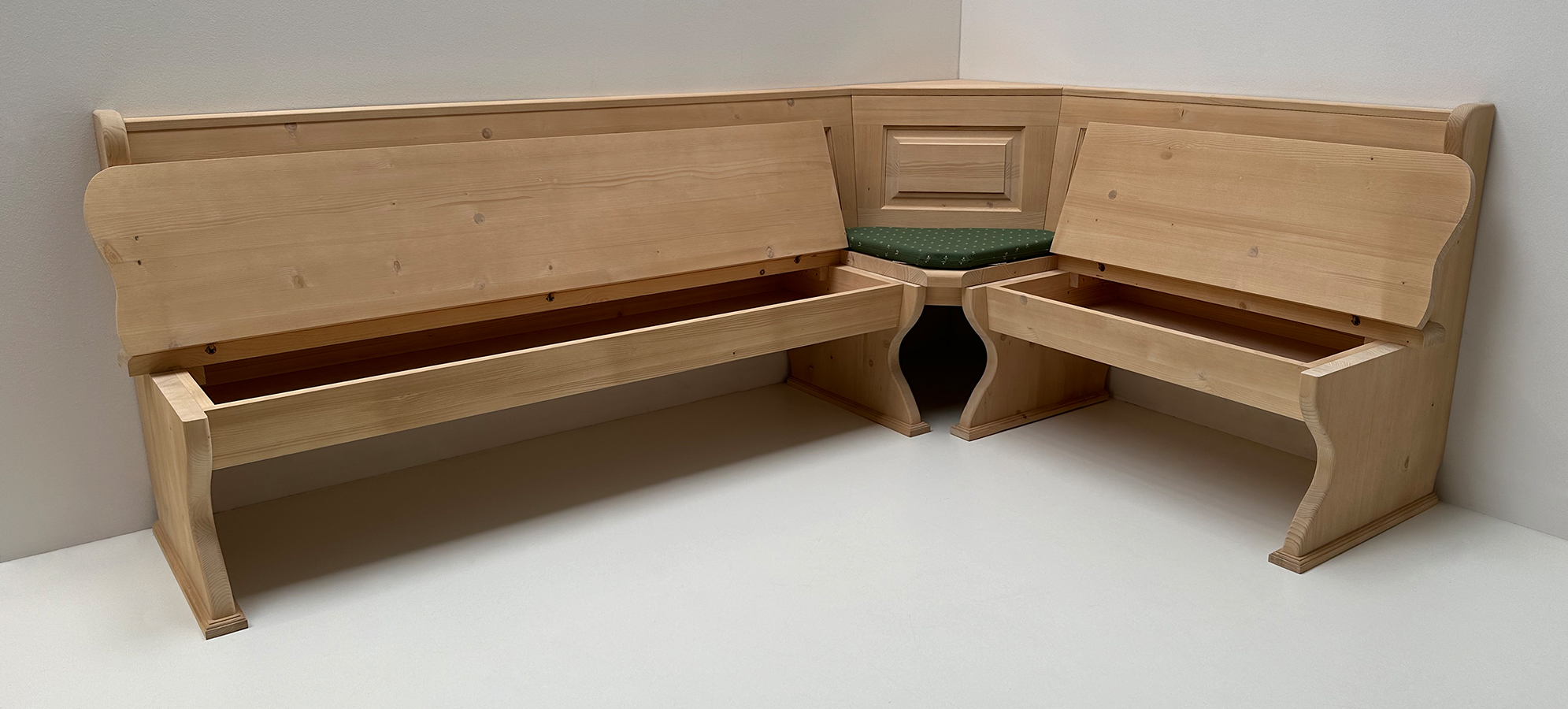 Eckbank Lindau 240/165 cm, XXLTruhen, Ecke aufklappbar, Polster genäht, Kundl grün
