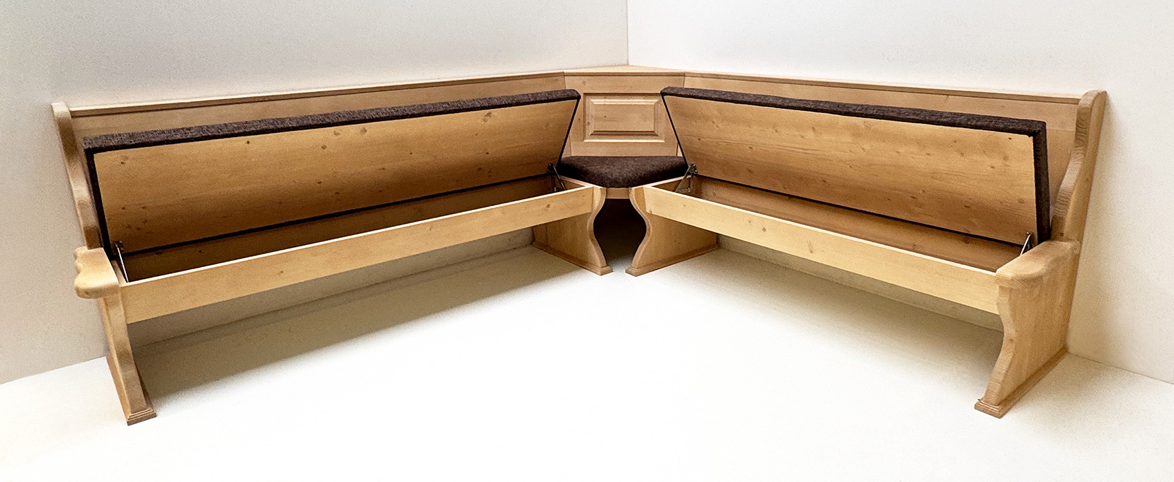 Eckbank Lindau Schenkelmaß 250/230 cm, Truhen aufklappbar, Außenwangen glatt