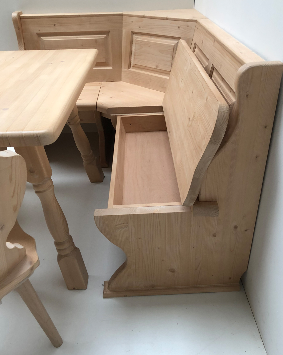 1 Eckbank 125/165 cm, gerade Kasetten, starker Sitz  4cm !,  mit Truhen, Aussenwangen glatt