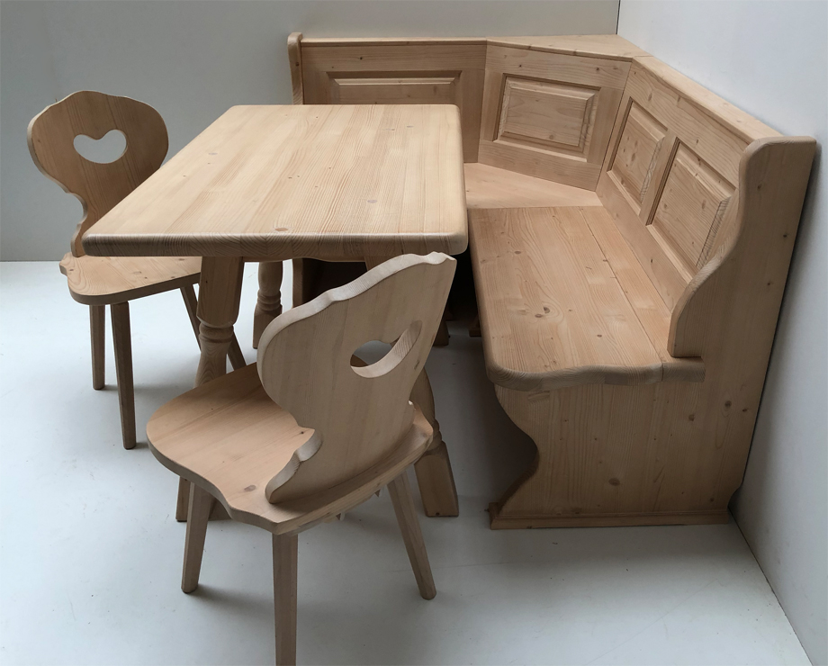 Eckbankgruppe LINDAU 125/165 Fichte, Tisch 4510-Amberg, 2 Bauernstühle Landau , Vienna oder Munich