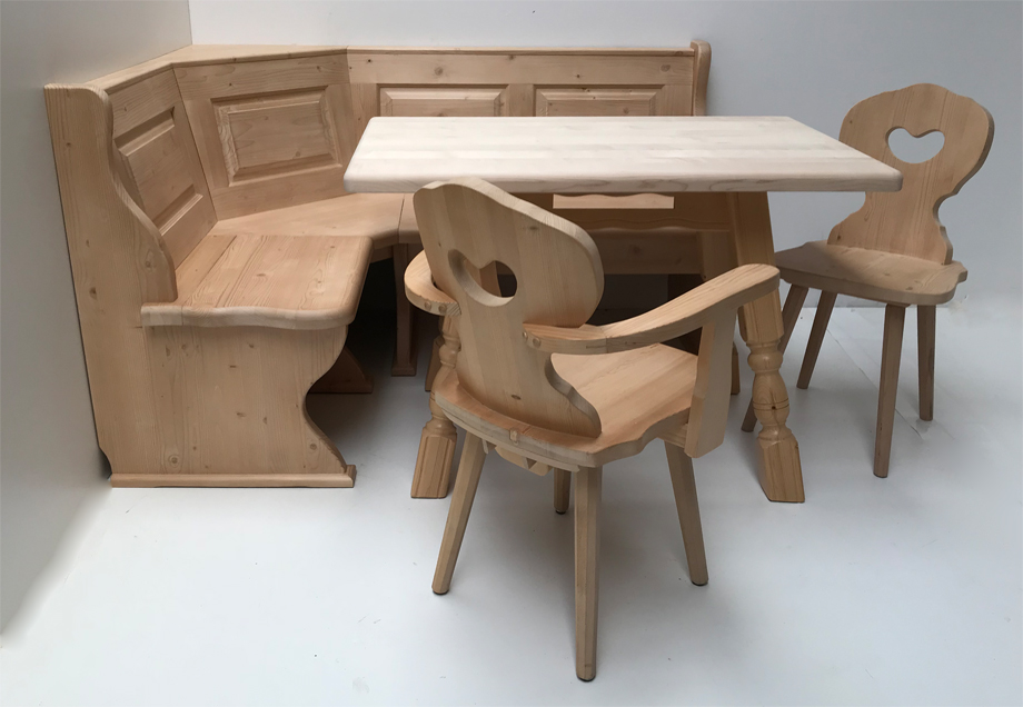 1 Eckbank 150/185 cm, gerade Kasetten, starker Sitz ,  mit Truhen, Aussenwangen geschnitzt