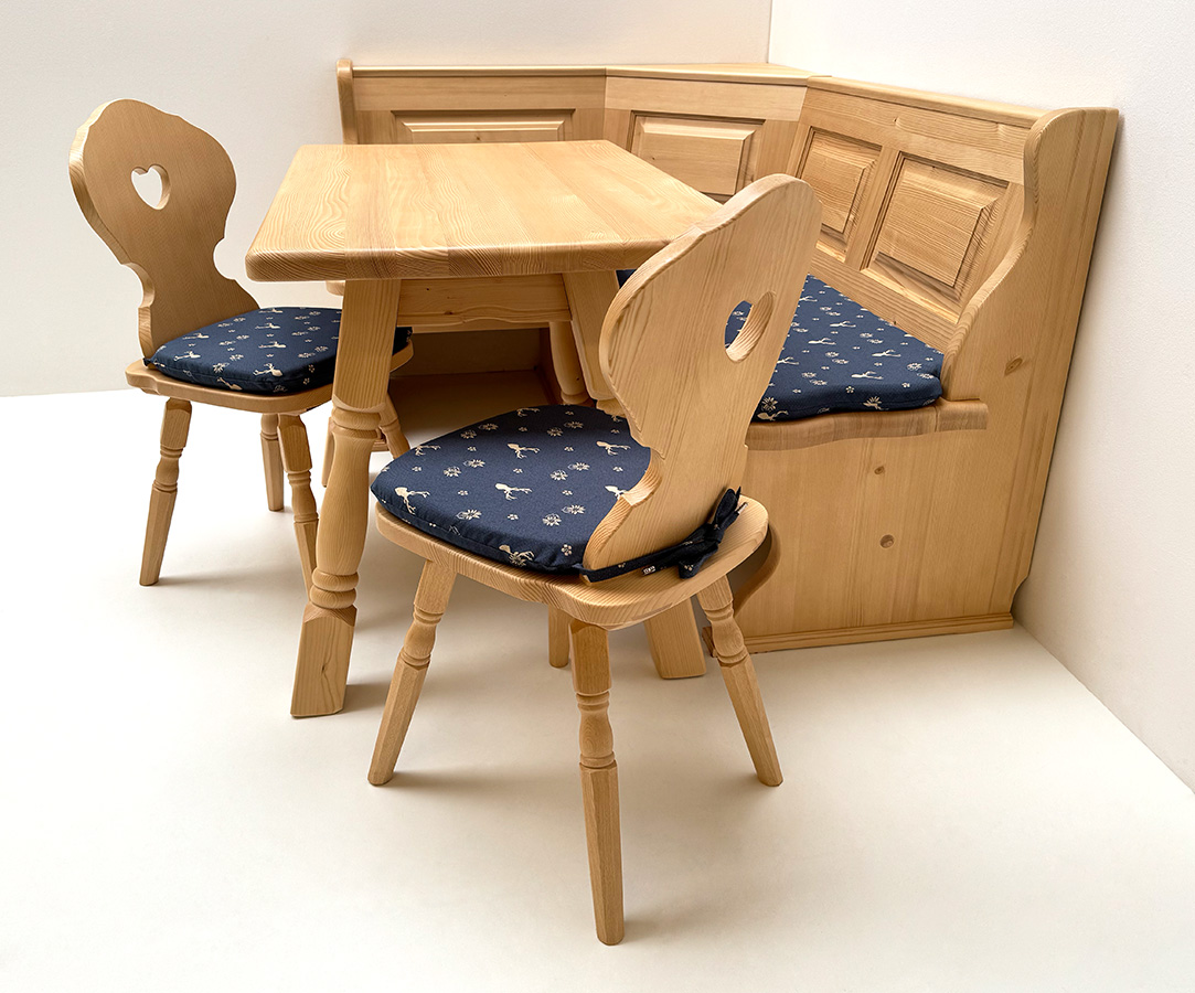 Eckbankgruppe LINDAU 125/165 Fichte, Tisch 4510-Amberg, Bauernstühle Munich, Polster genäht TS-3003