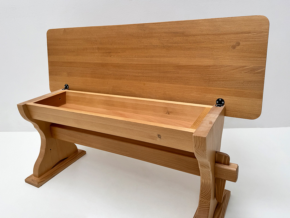 1 Eckbank Lindau 125/165 cm, gerade Kassetten, starker Sitz 4 cm, mit Truhen, Aussenwangen gerillt, Ecke aufklappbar