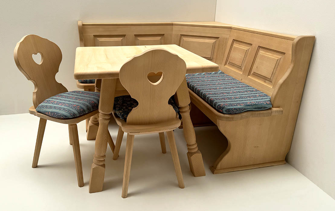 Eckbankgruppe LINDAU 125/165 Fichte, Tisch 4510-Amberg, 2 Bauernstühle Landau , Vienna oder Munich