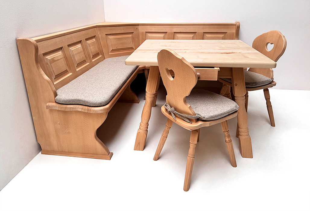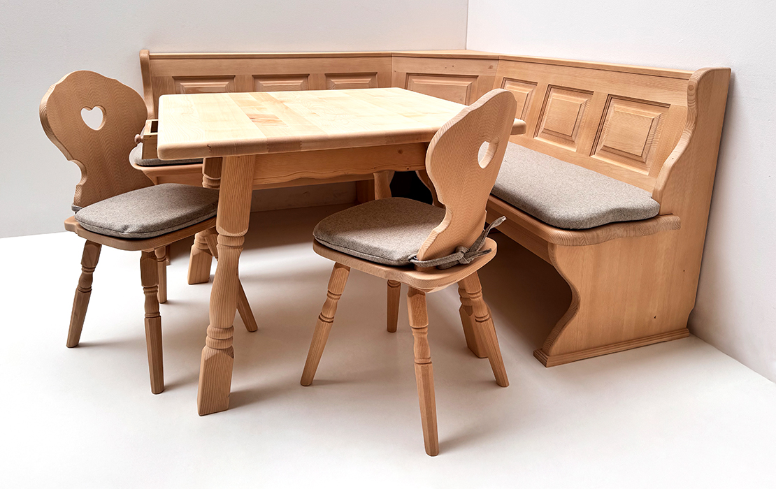 Eckbankgruppe LINDAU 165/125, Fichte, Tisch 4510 Amberg, Bauernstuhl, Armlehnstuhl Vienna Kundl grün