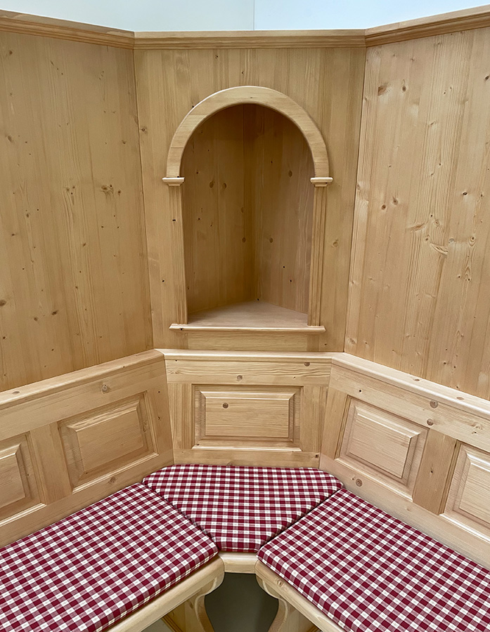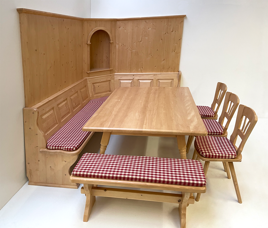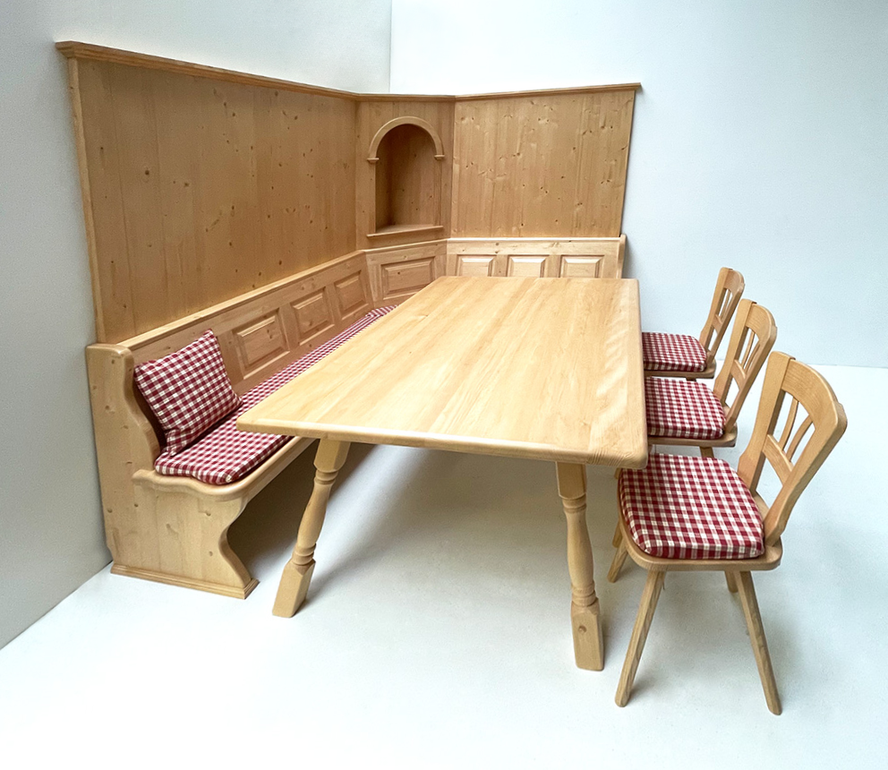Eckbankgruppe LINDAU 230/185 Fichte, Wandverkleidung, Eckkapitel, Tisch Amberg, Stuhl 81, TS-1301