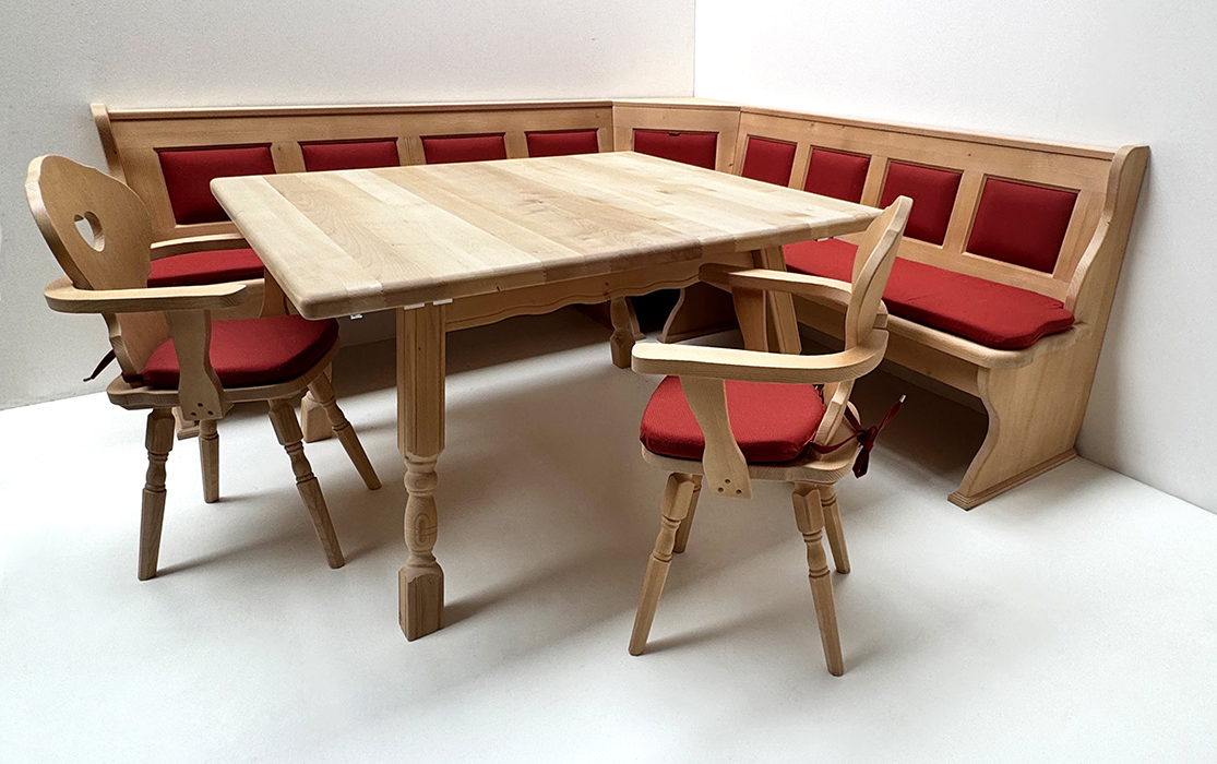 Eckbankgruppe LINDAU 165/125, Fichte, Tisch 4510 Amberg, Bauernstuhl, Armlehnstuhl Vienna Kundl grün